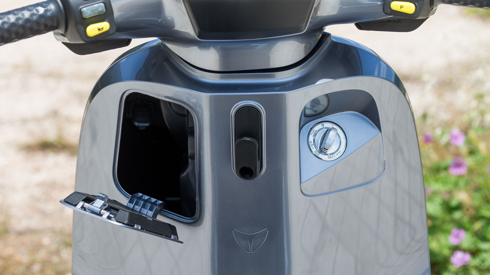 Το ρεζερβουάρ βρίσκεται στο κάτω μέρος για χαμηλότερο κέντρο βάρους του scooter, ενώ η τάπα πλήρωσης μπροστά στην ποδιά, διευκολύνει τον ανεφοδιασμό