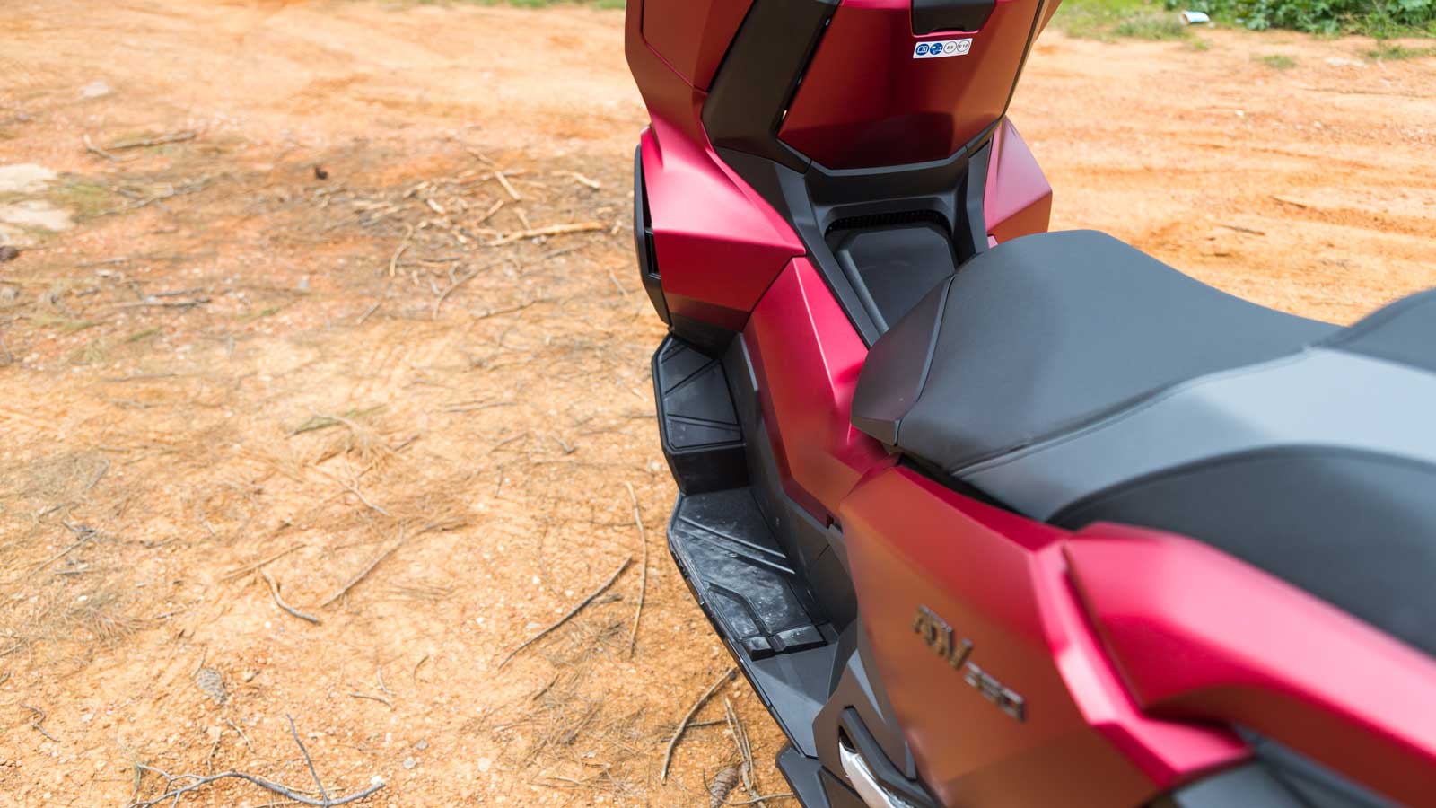 Η θέση οδήγησης θυμίζει κατά πολύ εκείνη του X-ADV και φέρνει περισσότερο σε μοτοσυκλέτα παρά σε scooter. Ο κορμός παραμένει όρθιος έχοντας σε ιδανική απόσταση το φαρδύ τιμόνι μεταβλητής διατομής, ενώ αρκετός είναι και ο διαθέσιμος χώρος για τα πόδια, με σωστές γωνίες για τα γόνατα και τις κεκλιμένες πλατφόρμες να υποδέχονται με άνεση ακόμα και μεγάλα πέλματα.Η σέλα είναι δύο επιπέδων με ύψος 795 χιλιοστά, αλλά το φαρδύ εμπρός της μέρος και το μεγάλο κεντρικό τούνελ θα δυσκολέψουν αναβάτες μέτριου αναστήματος να πατήσουν και τα δύο πόδια στο έδαφος.Διαθέτει μέτριας σκληρότητας αφρώδες, ενώ είναι ιδιαίτερα ευρύχωρη υποστηρίζοντας παράλληλα και τη μέση του αναβάτη.Ο συνεπιβάτης έχει αρκετό χώρο στη διάθεσή του αλλά και όμορφες χειρολαβές που δεν αλλοιώνουν τη σχεδίαση του μοντέλου.Βασικό χαρακτηριστικό του νέου μοντέλου είναι η πρακτικότητα που προσφέρει με μεγάλο χώρο αποσκευών 48 λίτρων κάτω από τη σέλα ο οποίος  μπορεί να φιλοξενήσει μέχρι και δύο fullface κράνη, ενώ το βαθύ ντουλαπάκι στα αριστερά της ποδιάς προσφέρει επιπλέον χώρο για μικροαντικείμενα άμεσης πρόσβασης αλλά και υποδοχή USB-C για φόρτιση ηλεκτρικών συσκευών.Ο πλούσιος εξοπλισμός περιλαμβάνει επίσης,ζελατίνα που ρυθμίζεται με τη χρήση χεριών σε διαφορετικές 4 θέσεις και σε εύρος 133 χιλιοστών,πρακτικό Smart-key το οποίο εκτός από την εκκίνηση του κινητήρα, ασφαλίζει αυτόματα σέλα, τάπα ρεζερβουάρ και ΤopBox(στην αντίστοιχη έκδοση), καθώς και LCD οθόνη οργάνων με ενσωματωμένη λειτουργία πολυμέσων Honda SmartphoneVoiceControlSystem για σύνδεση smartphone μέσω Bluetooth και  διαχείριση τηλεφωνικών κλήσεων και μουσικής. Η διαχείριση όλων των ρυθμίσεων της οθόνης και η απ-ενεργοποίηση του traction, ελέγχονται από τους αντίστοιχους διακόπτες στο αριστερό μέρος του τιμονιού.