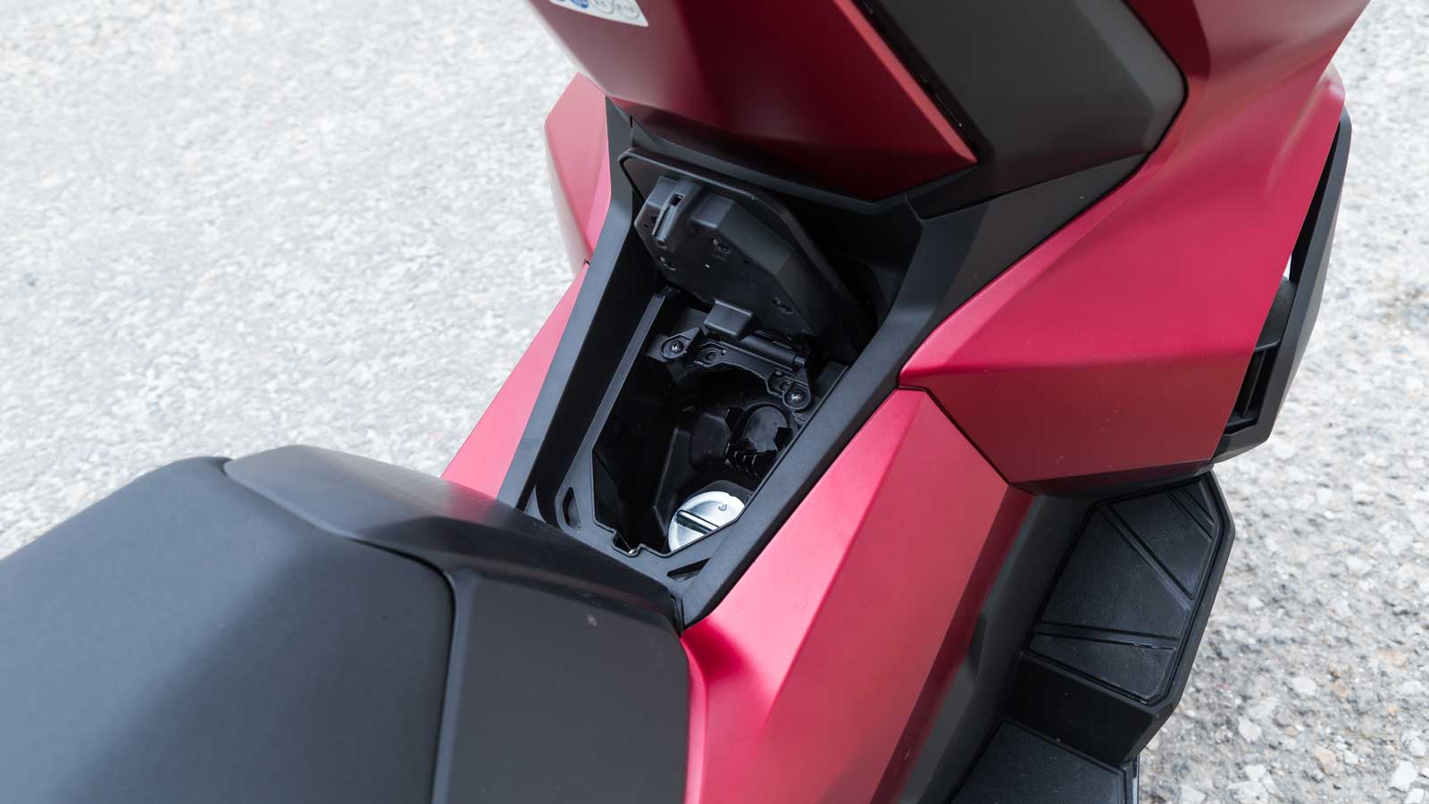 Ο χώρος αποσκευών των 48 λίτρων κάτω από τη σέλα μπορεί να φιλοξενήσει μέχρι και δύο fullface κράνη, ενώ φέρει ειδικό διαχωριστικό για καλύτερη ταξινόμηση των αντικειμένων.