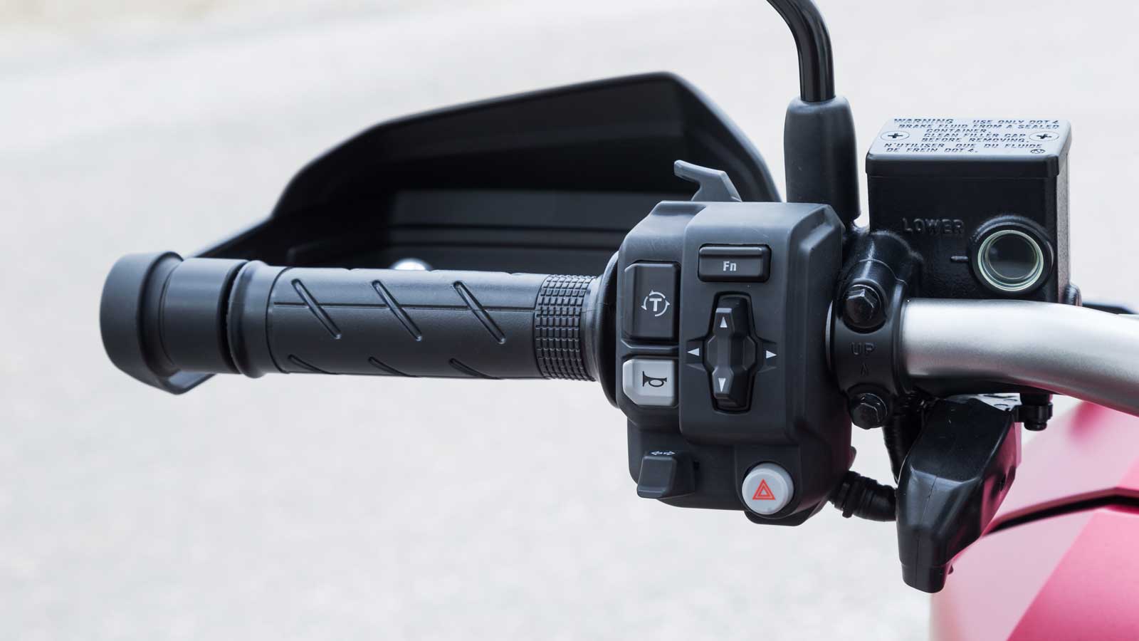 Η διαχείριση όλων των ρυθμίσεων της οθόνης και η απ-ενεργοποίηση του traction, ελέγχονται από τους αντίστοιχους διακόπτες στο αριστερό μέρος του τιμονιού. Στα δεξιά βρίσκεται η μίζα εκκίνησης και το k