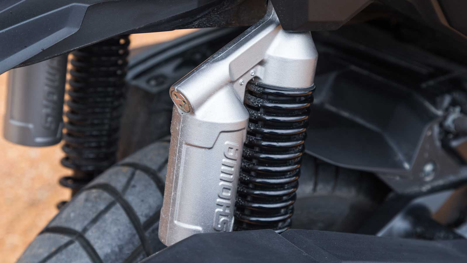 Οι αναρτήσεις της Showa είναι με διαφορά ότι ποιοτικότερο στην κατηγορία. Το ανεστραμμένο πιρούνι των 37 χιλιοστών, με τη διαδρομή των 125 χιλιοστών, στηρίζεται επάνω σε τιμονόπλακες μεγάλου μεγέθους που αυξάνουν την ακαμψία του εμπρός μέρους. Στο πίσω μέρος, ένα monoblock αλουμινένιο ψαλίδι συνδέεται με διπλά αμορτισέρ διαδρομής 130 χιλιοστών, τα οποία διαθέτουν ξεχωριστό δοχείο αερίου.