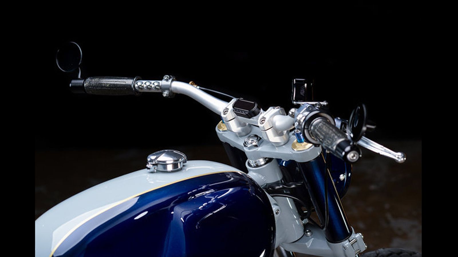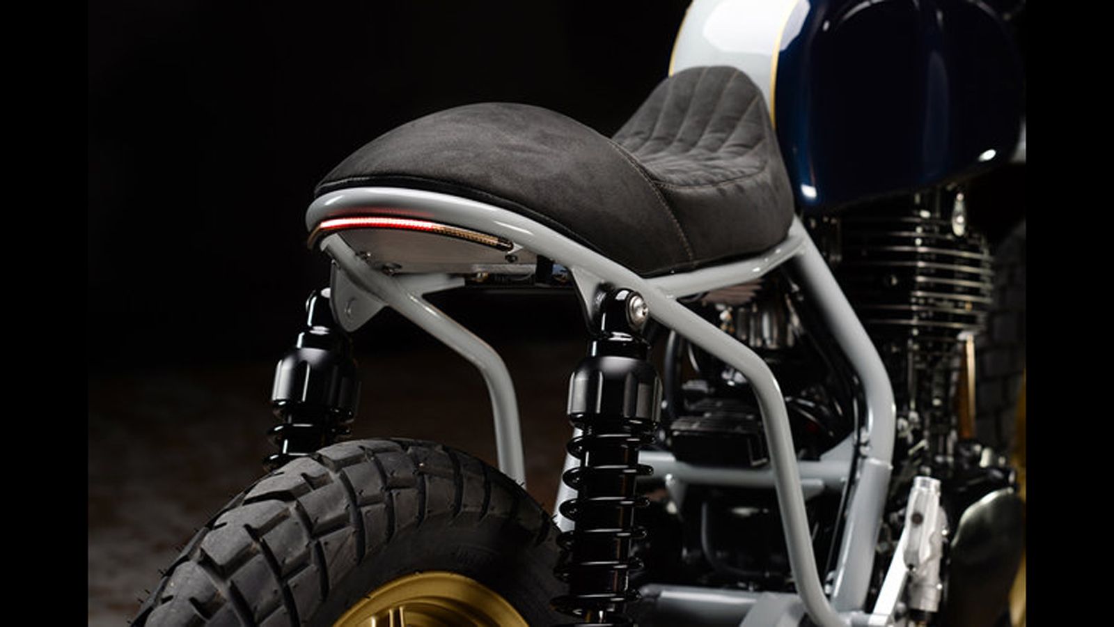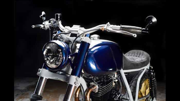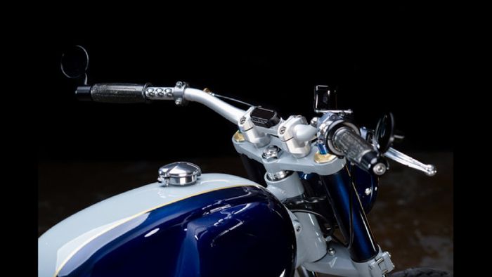Το κλασικού σχήματος ρεζερβουάρ, αγκαλιάζει την χειροποίητη σέλα με το μαύρο δέρμα. Τον μπλε χρωματισμό σε ρεζερβουάρ και κάλυμμα προβολέα, διαδέχεται η γκρι απόχρωση σε πλαίσιο και αναρτήσεις.