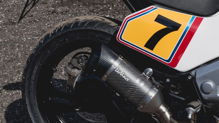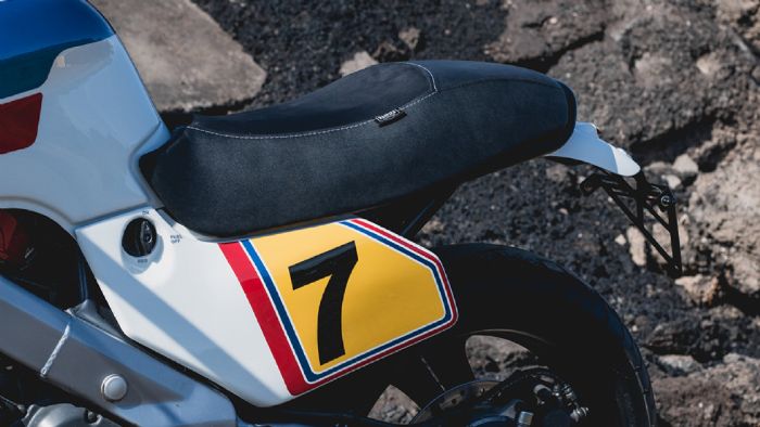 Το υποπλαίσιο είναι νέο,όπως επίσης και η σέλα αλλά και τα πλαϊνά καλύμματα, ενώ το ρεζερβουάρ παρέμεινε το εργοστασιακό, όμως βάφτηκε εκ νέου. Η εξάτμιση απέκτησε ένα νέο τελικό από την Leo Vince, ενώ ο Jimmy έβαψε τροχούς, πιρούνι και υποπλαίσιο σε μαύρο χρώμα, ρίχνοντας και μια ιδέα κόκκινου στην κατασκευή μέσα από τα καπάκια των κεφαλών. Νέο είναι και το μούτρο με τον στρογγυλό προβολέα και το πλαστικό κάλυμμα που τον περιβάλλει, αλλά και το διπλό νέο όργανο που τοποθετήθηκε στο τιμόνι.