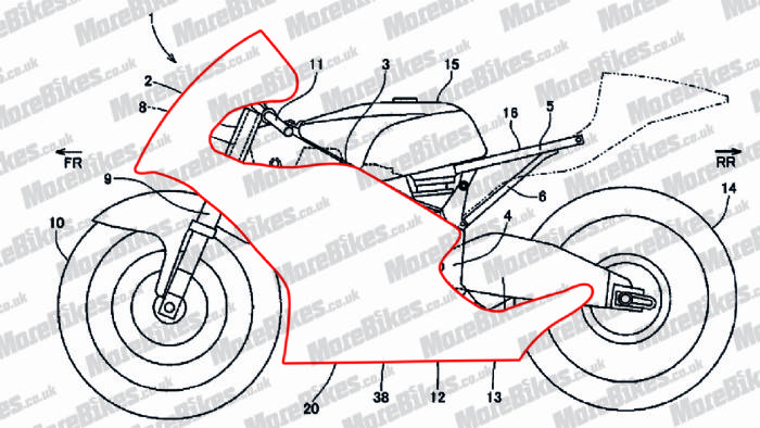 Δείτε προσεκτικά το σχέδιο στην εικόνα: Η πατέντα αυτή, κατατέθηκε από την Honda προς κατοχύρωση και αναμφίβολα, απεικονίζει μια σπορ μοτοσυκλέτα. Αυτό όμως που κάνει άμεσα εντύπωση είναι ο κινητήρας, που γίνεται ορατός στο σχέδιο: Φαίνεται ότι το μοτέρ έχει τοποθετηθεί με τον κύλινδρο (ή τους κυλίνδρους) προς τα πίσω!