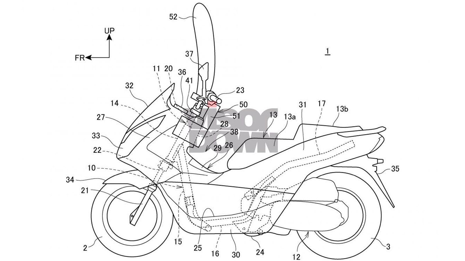 Πιο συγκεκριμένα, το σχέδιο παρουσιάζει την γνώριμη μορφή του PCX, μαζί με έναν αερόσακο που φαίνεται να βγαίνει προς τα πάνω, στην περιοχή του τιμονιού και του ταμπλό. Στην δεύτερη απεικόνιση, από το «βλέμμα» του αναβάτη, φαίνεται ότι ο μηχανισμός του αερόσακου θα είναι (στην αρχή τουλάχιστον) ξεχωριστός από το scooter ως εξωτερική προσθήκη.