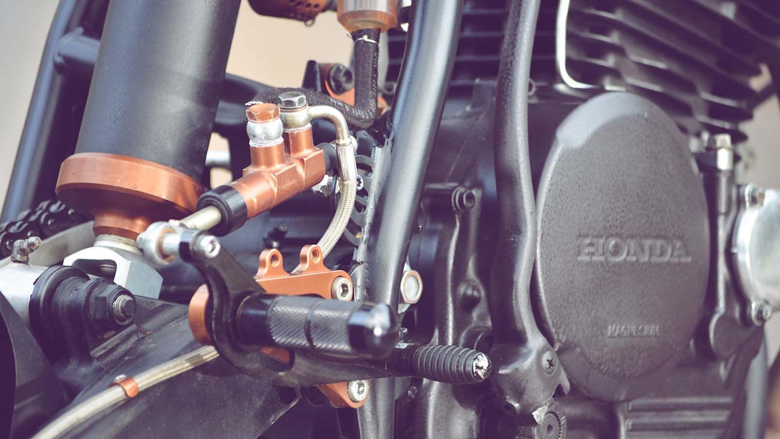 Ο κινητήρας υπέστη ολική ανακατασκευή και βάφτηκε σε μαύρο χρώμα. Το πίσω φρένο απέκτησε τρόμπα και δαγκάνα της Beringer, ενώ εμπρός ο Lionel τοποθέτησε εξαρτήματα της Brembo. Ολοκληρώνοντας την κατασκευή, ο Lionel επιθυμούσε μια έντονη νότα πολυτέλειας στην μοτοσυκλέτα, χρησιμοποιώντας τελικά εξαρτήματα, σέλα και ειδικά γκριπ σε καφέ χρώμα, που δίνουν μια premium αίσθηση χειροποίητου. Πως σας φαίνεται;