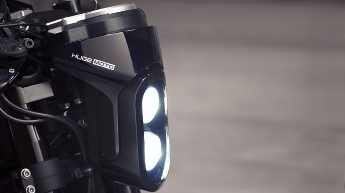 Οι πιο προσεκτικοί ωστόσο θα έχουν ήδη προσέξει πως η εικονιζόμενη μοτοσικλέτα δε φορά μόνο τα παραπάνω κομμάτια. Αυτό διότι στην επίσημη παρουσίαση του Huge Black που έγινε πριν δύο μέρες, στις 9 του Σεπτέμβρη στην εκδήλωση Piston and Chain στο San Francisco, οι άνθρωποι της Huge Moto προσέθεσαν κάμποσα καλούδια για να κάνουν το πρωτότυπό τους ακόμη πιο καθηλωτικό. Τα κομμάτια αυτά προέρχονται ως επί το πλείστον από το εμπόριο, αλλά δεν περιλαμβάνονται στο κιτ των 3.000.