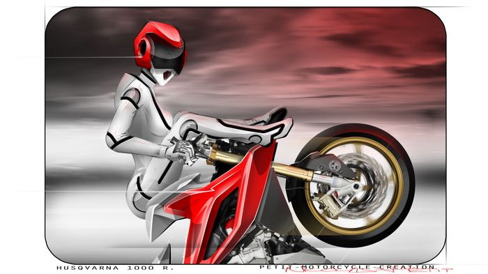 Για βάση και αφορμή, χρησιμοποιεί το Husqvarna Nuda 900R, όμως στο σχέδιο του χρησιμοποιεί τα μηχανικά μέρη και τον κινητήρα του BMW S 1000 RR! Το εντυπωσιακότερο σημείο στο design του Husqvarna 1000R είναι σίγουρα τα πλαστικά της μοτοσικλέτας, και ιδιαίτερα η στήριξη της σέλας και του ρεζερβουάρ (που όμως δεν βρίσκεται εκεί, με το φίλτρο αέρα να παίρνει τη θέση του, και με το πρώτο να μετακομίζει κάτω από τη σέλα), με το περίεργο κενό ανάμεσα τους.