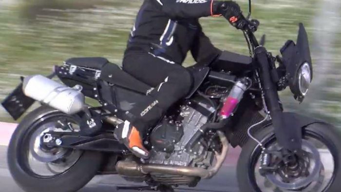 Παράλληλα, στο γυμνό «σώμα» της μοτοσυκλέτας διακρίνεται ξεκάθαρα ο δικύλινδρος κινητήρας LC8c, που γνωρίσαμε πρώτη φορά από το 790 Duke. Οι πληροφορίες ωστόσο λένε ότι στην περίπτωση αυτού του νέου μοντέλου, θα χρησιμοποιηθεί ο νέος κινητήρας των 890 κυβικών που θα εξοπλίσει και μοντέλα της KTM.