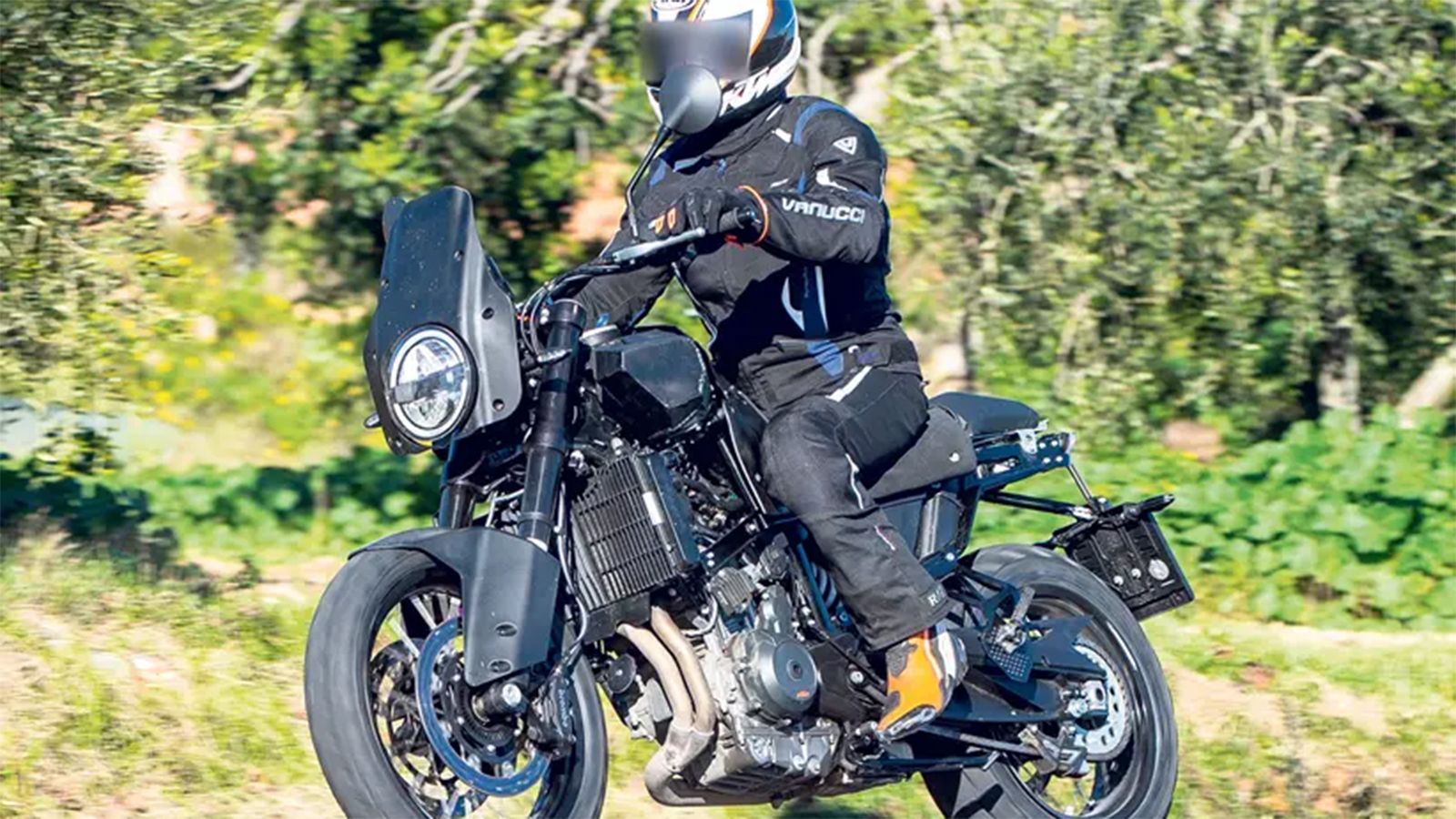Δείτε την εικόνα: Ο δικύλινδρος κινητήρας της KTM φαίνεται αμέσως, αφού δεν έχει αλλάξει καν λογότυπα: Προφανώς αυτό είναι κάτι ασήμαντο αφού η μοτοσυκλέτα είναι στην φάση δοκιμών. Ο κινητήρας αποδίδει 120 ίππους και είναι πιθανόν να έχει μια διαφορετική χαρτογράφηση, για το μοντέλο της Husqvarna.