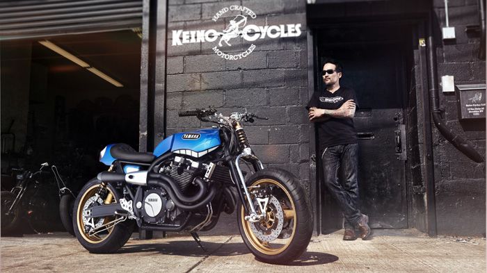 Εδώ η... μπλε ραψωδία, το original custom μηχανάκι του Keino Sasaki, πάνω στο οποίο βασίστηκε το XJR 1300 του 2015. Βασίστηκε... χαλαρά, θα λέγαμε.