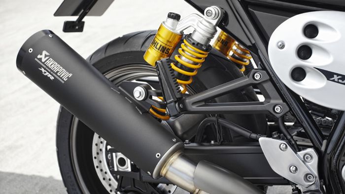 Πολλά επίσημα αξεσουάρ συνοδεύουν τα 2 XJR 1300. Εδώ βλέπετε το -επίσης τεράστιο- τελικό της Akrapovic. Λίγο πιο μικρό ρε παιδιά, χάθηκε να το βγάζατε;