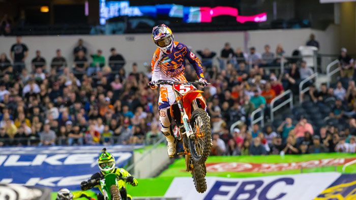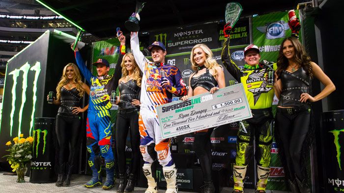 την Εργοστασιακή Ομάδα Red Bull KTM, το Σάββατο στο Arlington του Τέξας (Η.Π.Α.) παίρνοντας νίκες και στις δύο κατηγορίες, 450 και 250, των αγώνων Supercross, αφού η διοργάνωση μεταφέρθηκε στην Ανατολική Ακτή για πρώτη φορά το 2015.