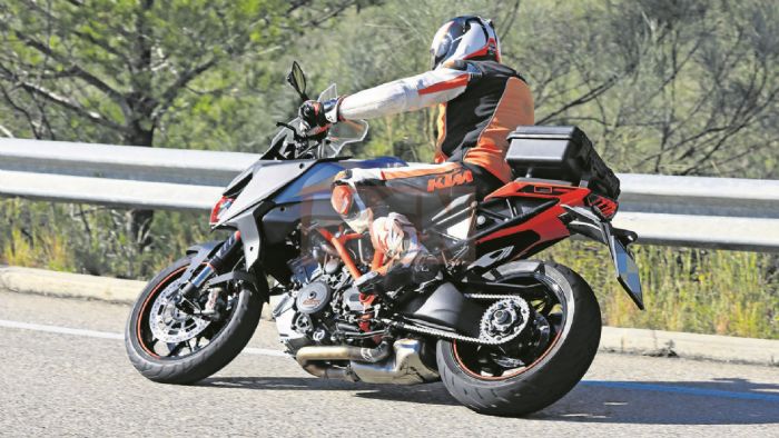 Ο κατασκοπευτικός φακός συνέλαβε το νέο 1290 Super Duke GT κατά τη διάρκεια δοκιμών εξέλιξης κοντά στις εγκαταστάσεις της εταιρείας στην Ισπανία και φαίνεται να οι αλλαγές να έχουν στόχο την άνεση στο ταξίδι.
