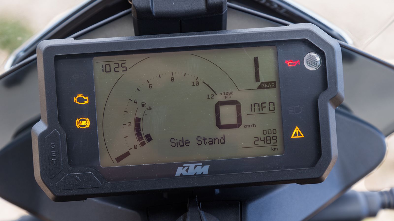 Το 250 Adventure είναι εφοδιασμένο με μια LCD οθόνη, η οποία παρέχει πολλές πληροφορίες, έχει shift indicator, ενώ σε ενημερώνει όταν το σταντ είναι κατεβασμένο ή κλειστός ο διακόπτης του kill switch. Από κάτω της έχει τοποθετηθεί παροχή ρεύματος 12V για φόρτιση συσκευών.