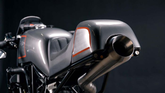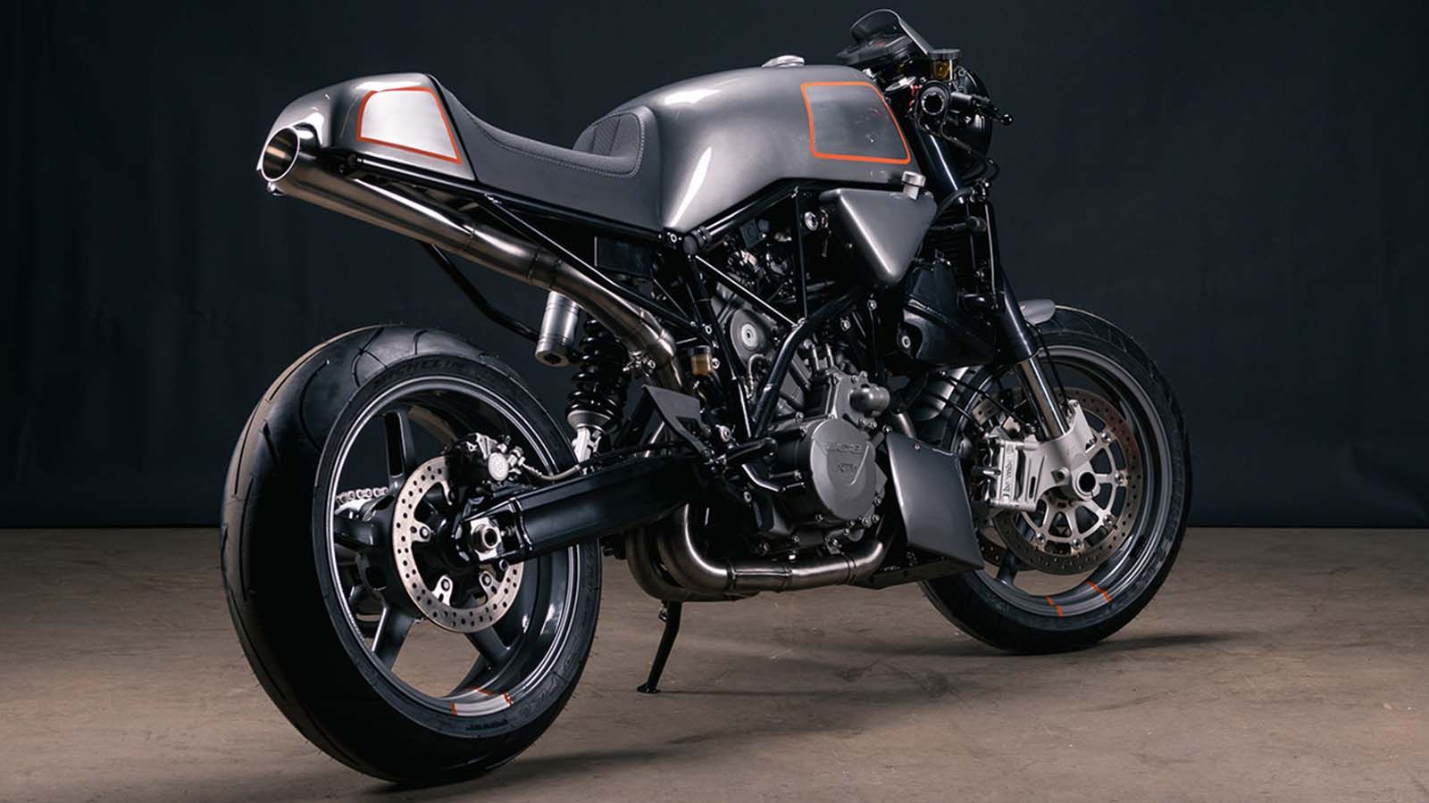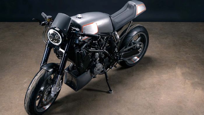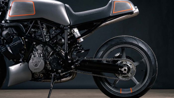 Με μοτοσυκλέτα-δότη ένα KTM Superduke 990 του 2007, ο Prust αποσυναρμολόγησε πλήρως την μοτοσυκλέτα και ξεκίνησε. Πρώτα, έφτιαξε μόνος του, στο χέρι, την ουρά και το τεπόζιτο καυσίμου, το υποπλαίσιο, την μικρή καρίνα και το εμπρός φτερό αλλά και το μασκάκι, χρησιμοποιώντας αλουμίνιο. Η εξάτμιση φέρει νέο τελικό από την Cone Engineering ενώ, για να βοηθήσουν την αναπνοή του δικύλινδρου LC8, ο Tony και η ομάδα του τοποθέτησαν μια εισαγωγή αέρα από την Moto Hooligan.