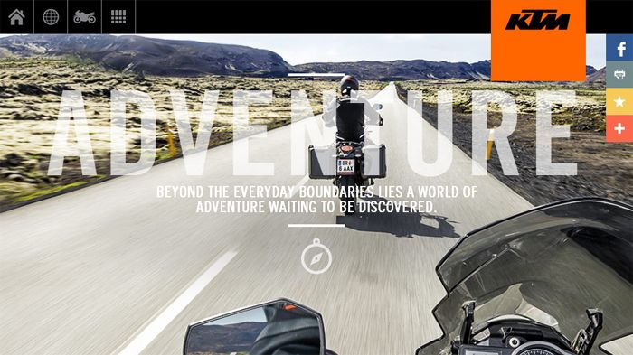 Με το νέο microsite (σε επτά γλώσσες, όχι όμως ελληνικά) ο αναβάτης μπορεί να περιπλανηθεί στον πορτοκαλί mega on-off κόσμο και να γνωρίσει καλύτερα κάθε πτυχή των Adventure ώστε να καταλήξει στη μοτοσικλέτα της αρεσκείας του.