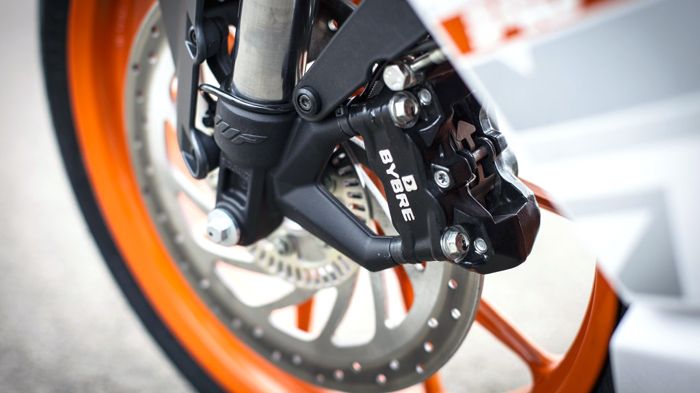 Το σύστημα φρένων έχει εξελιχθεί σε συνεργασία με την Brembo, και αποτελείται από τετραέμβολη ακτινική(!) δαγκάνα με δίσκο 300χλστ. μπροστά, ενώ υπάρχει και ABS της Bosch στο βασικό εξοπλισμό –ένα μοναδικό χαρακτηριστικό για αυτή την κατηγορία!