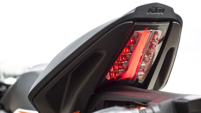 Επιπλέον διαφορές που θέτουν το RC σε άλλη κατηγορία σε σχέση με το γυμνό Duke, είναι αλλαγές στις αναρτήσεις της WP, που πλέον έχουν μικρότερη διαδρομή και μεγαλύτερες τιμές στις αποσβέσεις. Όπως και το Duke έτσι και το RC διαθέτει μεγάλων διαστάσεων πιρούνι, με καλάμια ίδιας διαμέτρου (43χλστ.) με το superbike KTM 1190 RC8 R.