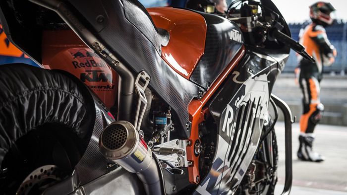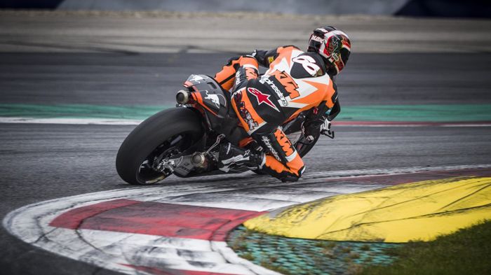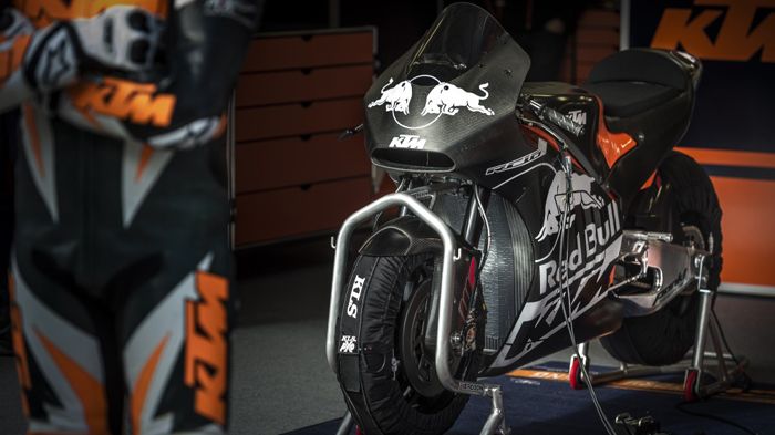 Η δοκιμή που έγινε στην πίστα της Red Bull στην Αυστρία και σας δείξαμε χτες και προχτές από βίντεο και ανεπίσημες φωτογραφίες, ήταν αυτό που η ΚΤΜ ονομάζει Roll Out event, δηλαδή κάτι σαν την επίσημη πρώτη της υπό εξέλιξη αγωνιστικής μοτοσυκλέτας, 15 μήνες αφότου ανακοινώθηκε και επισήμως η πρόθεση της ΚΤΜ να συμμετάσχει στο Παγκόσμιο Πρωτάθλημα MotoGP από το 2017.