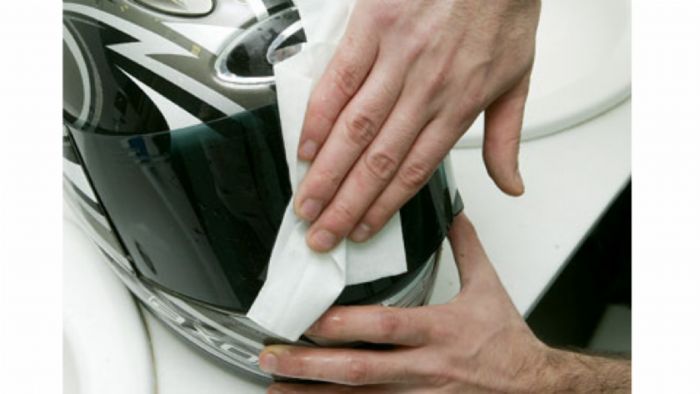 Καλό είναι στον καθαρισμό του κράνους να συμπεριλάβουμε και μερικές ακόμη απλές αλλά σημαντικές διαδικασίες. Το εξωτερικό του κράνους και η ζελατίνα μπορούν να καθαριστούν με ένα πανάκι και με ουδέτερο σαπούνι. Και σε αυτή την περίπτωση η χρήση ακατάλληλων καθαριστικών μπορεί να έχει δυσάρεστα αποτελέσματα. Πολύ σημαντικός είναι και ο καθαρισμός των αεραγωγών από σκόνη, πετραδάκια ή έντομα, ο οποίος μπορεί πολύ εύκολα να γίνει με μια μπατονέτα.