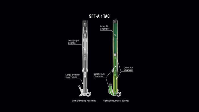 Το KX450F του 2015 είναι η πρώτη μοτοσυκλέτα μαζικής παραγωγής που εξοπλίζεται με την καινοτόμο εμπρόσθια ανάρτηση Showa SFF-Air TAC, μια τεχνολογία που εφαρμοζόταν ως τώρα μόνο στα επίσημα αγωνιστικά των εταιρειών. Το νέο πιρούνι, διαχωρίζει τις λειτουργίες του σε ένα σύστημα απόσβεσης στην αριστερή μπουκάλα, και σε ένα πνευματικό ελατήριο τριών θαλάμων αέρος στη δεξιά. Με αυτό τον τρόπο, χαρακτηρίζεται από ενισχυμένη ακαμψία, χαμηλό βάρος, μαλακή λειτουργία και ευρεία δυνατότητα ρυθμίσεων. Οι νέες ρυθμίσεις της πίσω ανάρτησης συμβάλλουν περαιτέρω στον έλεγχο και τη σταθερότητα της μοτοσυκλέτας, ιδιαίτερα σε οδήγηση υψηλών ταχυτήτων. Νέες ρυθμίσεις του κινητήρα και της ECU εξασφαλίζουν καλύτερες επιδόσεις και πρόσφυση της μοτοσυκλέτας. Στο KX450F του 2015 συναντάμε μεγαλύτερο εμπρόσθιο δισκόφρενο 270mm τύπου μαργαρίτα, για αυξημένη δύναμη πέδησης και εξαιρετικό έλεγχο της μοτοσυκλέτας.