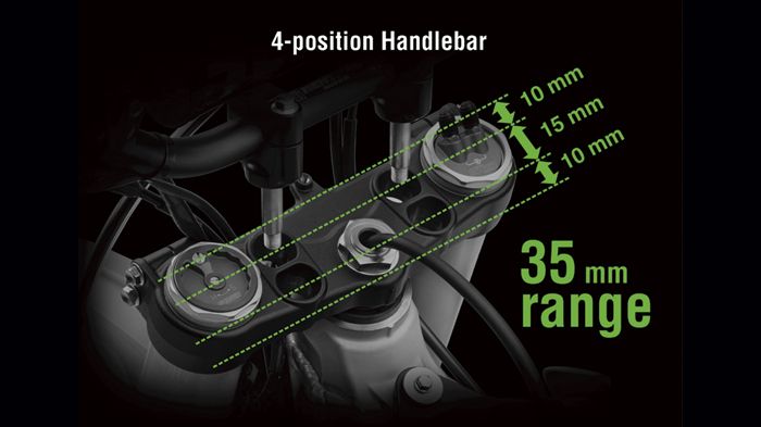 Τόσο το KX250F όσο και το KX450F του 2015 δίνουν τη δυνατότητα στον αναβάτη να προσαρμόσει την εργονομία της μοτοσυκλέτας στις ατομικές του διαστάσεις και στο προσωπικό του στυλ οδήγησης. Το τιμόνι μπορεί να ρυθμιστεί σε 4 διαφορετικές θέσεις, ενώ επιλογή δύο θέσεων προσφέρεται για τα μαρσπιέ. Και τα δύο μοντέλα διατηρούν τις επαναστατικές εφαρμογές που εγγυώνται την επιτυχία τους στους αγώνες, όπως το ηλεκτρονικό σύστημα ελέγχου εκκίνησης, οι 3 επιλογές χαρτογράφησης, καθώς και το προαιρετικό FI calibration kit.