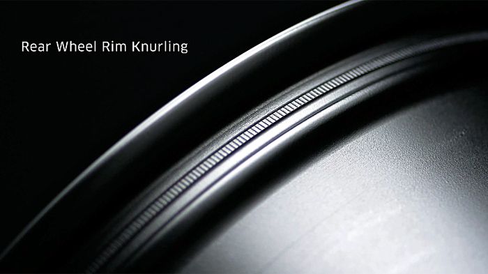 Rear Wheel Rim Knurling κυρίες και κύριοι. Με απλά λόγια, με ειδική κατεργασία η Kawasaki έχει κάνει σαγρέ το τμήμα της πίσω ζάντας, εκεί που εφαρμόζει το ελαστικό. Η λύση αυτή χρησιμοποιείται τα τελευταία χρόνια από κατασκευαστές... τρακτέρ, ώστε να μειωθεί η ολίσθηση του ελαστικού πάνω στη ζάντα, από τις κτηνώδεις ροπές των συγκεκριμένων γεωργικών μηχανημάτων. Υποθέτουμε πως ο στόχος της Kawasaki είναι παρεμφερής, ώστε να μην αρχίσει το ελαστικό να περιστρέφεται τρελά πάνω στη ζάντα, όποτε το Turbo μπαίνει σε λειτουργία!