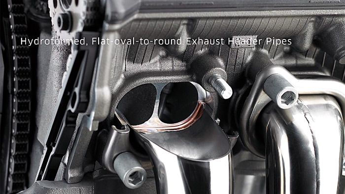 Οι λαιμοί των εξατμίσεων έχουν κατεργασία hydroforming, για να αποκτήσουν οβάλ σχήμα στην αρχή, καταλήγοντας στη συνέχεια σε στρογγυλή διατομή.