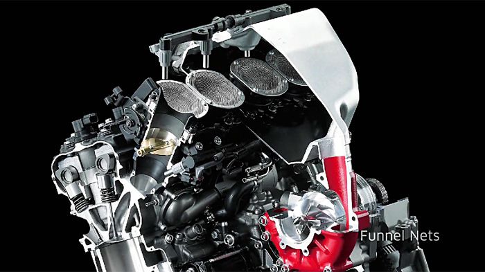 Στο πρώτο κάδρο του βίντεο, βλέπουμε και πάλι την φτερωτή του υπερσυμπιεστή, φτιαγμένη από ένα κομμάτι / μπλοκ billet αλουμινίου. Μμμ, δεν λέμε, όμορφη δείχνει. Precision-machined μας λέει η Kawasaki, εντάξει, αυτό εξυπακούεται, δεν μας λέει κάτι καινούργιο.