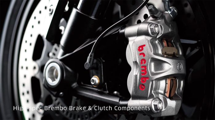 Το επόμενο εξάρτημα που θα μας απασχολήσει είναι τα φρένα και ο συμπλέκτης, που προέρχονται από τη Brembo. Βλέπουμε τις ακτινικές monoblock δαγκάνες μπροστά, και το μονόδρομο συμπλέκτη. Εντυπωσιακά, δεν λέμε, αν και όχι εξωπραγματικά. Συνεχίζουμε με τα ενισχυμένα γρανάζια του κιβωτίου, και κάπου εκεί, το βίντεο τελειώνει.