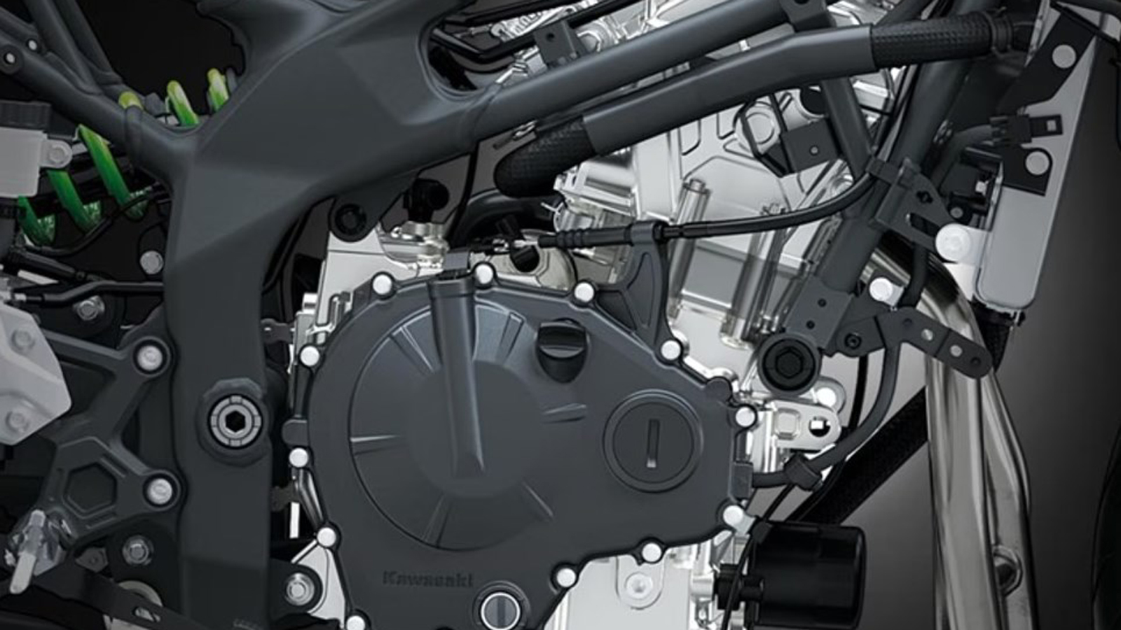 Μάλιστα αυτή είναι και η κύρια καινοτομία και διαφορά του σε σχέση με τις σημερινές sport μοτοσυκλέτες σε αυτήν την κατηγορία, μιας και οι τετρακύλινδροι 400αρηδες κινητήρες έχει πλέον χάσει στη δημοτικότητα που είχα πριν μερικές δεκαετίες. Τώρα όμως η Kawasaki τον επαναφέρει στο προσκήνιο για να χαρίσει ξανά στους αναβάτες την μοναδική αίσθηση και την χροιά στις υψηλές στροφές. Αυτός ο ολοκαίνουργιος κινητήρας 399 κ.εκ. με τους δύο επικεφαλής εκκεντροφόρους και τη συμπίεση στο 12,3:1, αποδίδει 77 ίππους στις 14.500 σ.α.λ. (με το κόφτη να βρίσκεται στις 15.000 σ.α.λ.) και 42Νm ροπής, ενώ χάρη στο σύστημα βεβιασμένης εισαγωγής αέρα ή ram-air που έχει τοποθετηθεί η ισχύς θα μπορεί να ανέβει μέχρι και τους 79 ίππους. Αξίζει να σημειωθεί ότι το ρεζερβουάρ έχει χωρητικότητα 15 λίτρων και το βάρος της Kawasaki Ninja ZX-4RR με full υγρά αγγίζει τα 188 κιλά.