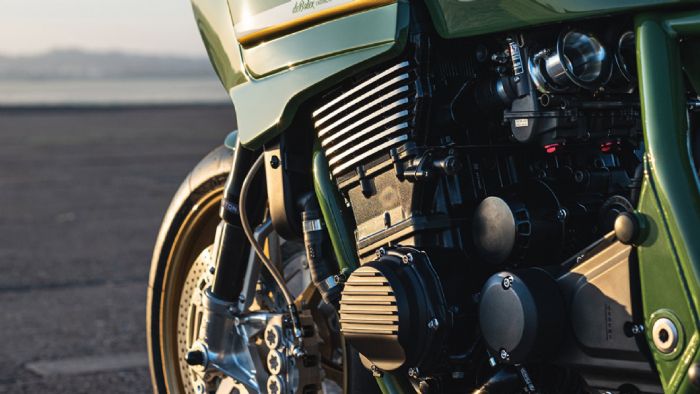 Οι αλλαγές φυσικά δεν τελειώνουν εδώ: Τα 4 καρμπυρατέρ προέρχονται από την Mikuni και έχουν διάμετρο 38 χιλιοστών, ενώ η εξάτμιση είναι χειροποίητη από ανοξείδωτο ατσάλι και τελικά της Arrow. Αλλαγές έγιναν και στο «κόκπιτ» με νέο ίσιο τιμόνι της Rizoma, γκριπ της Renthal, γρήγορη γκαζιέρα της Domino και φλας από την Motogadget. Το αποτέλεσμα θυμίζει τα ρετρό αγωνιστικά. Η μοτοσυκλέτα φέρει, τέλος, μια επιγραφή «1/1», ένα από ένα δηλαδή, που υπογραμμίζει την μοναδικότητα της. Πως σας φαίνεται;