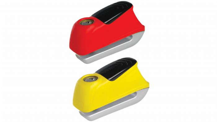 Ο ενσωματωμένος συναγερμός, με σειρήνα που φτάνει τα 110 db σχεδιάστηκε έτσι ώστε να τον ενεργοποιείται όποτε εσείς επιθυμείτε. Εργονομία και ασφάλεια μαζί. Τεχνικά Χαρακτηριστικά: Πείρος κατασκευασμένος από χάλυβα 10 χιλιοστά, εύκολος χειρισμός χάρη στο “σπρώχνω και κλειδώνω”, ενσωματωμένος συναγερμός με σειρήνα 110db, εύκολος οπλισμός / αφοπλισμός του συναγερμού (On-Off), αισθητήρας συναγερμού που ενεργοποιείται με δόνηση. Διατίθεται με δύο κλειδιά και θήκη μεταφοράς. Έχει καλώδιο υπενθύμισης με πιάσιμο στο τιμόνι. Επίπεδο ασφαλείας Abus “7”. Είναι διαθέσιμο σε κόκκινο ή κίτρινο χρώμα και περιλαμβάνονται μπαταρίες για τον συναγερμό. Δοκιμασμένο και σε σπρέυ πάγου. Βάρος: 900γρ.
