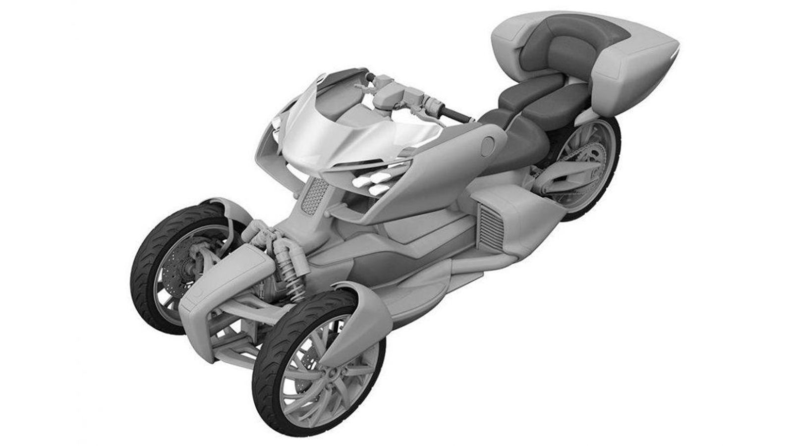 Σχέδιο που απεικονίζει την πιθανή μορφή, ενός μελλοντικού τρίτροχου οχήματος της Yamaha που θα φέρει το υβριδικό μηχανικό σύνολο.