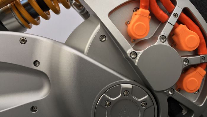 Η φωτογραφία είναι αρκετά αποκαλυπτική, καθώς δείχνει και άλλες λεπτομέρειες του μοντέλου. Προσέξτε για παράδειγμα, το αμορτισέρ Ohlins που διακρίνεται στο βάθος και θα εξοπλίσει την μοτοσυκλέτα –στην «καλή» της έκδοση, φυσικά. Ακόμα, βάσει αυτής της εικόνας, έχουμε να κάνουμε με ένα υδρόψυκτο μοτέρ, βασισμένο σχεδιαστικά σε αυτό της πανίσχυρης LS-218.