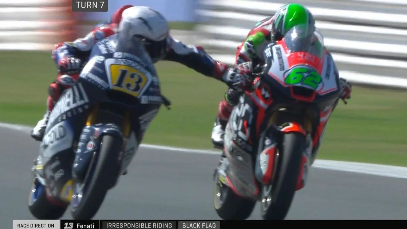Ο Fenati στο παρελθόν έχει εκδιωχθεί από την ακαδημία VR46 του Valentino Rossi λόγω προβλημάτων συμπεριφοράς, ενώ έχασε και την θέση του στην ομάδα του όταν έτρεχε στην Moto3, για παρόμοιους λόγους… Για την ιστορία, και ο Stefano Manzi τιμωρήθηκε από τους αγωνοδίκες με ποινή 6 θέσεων, για την σύγκρουσή του με τον Fenati που οδήγησε στο περιστατικό. Δείτε το και σε βίντεο, παρακάτω…