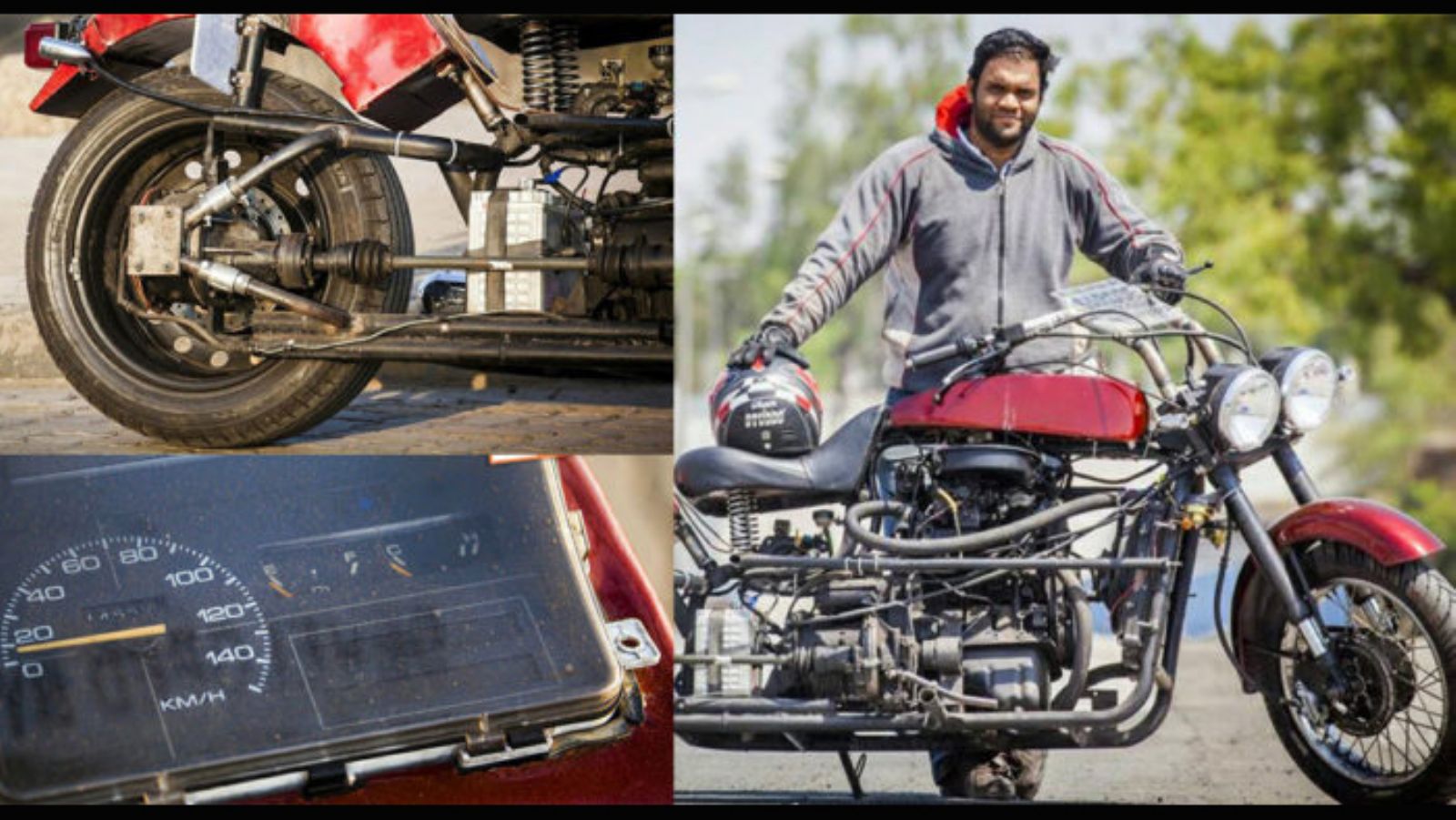 Ο Nilesh Sarode κατάφερε να βάλει τον κινητήρα 800 κ.εκ. του παλιού του αυτοκινήτου Maruti, σε μια χειροποίητη custom μοτοσυκλέτα. Το αποτέλεσμα θα το κρίνετε εσείς.