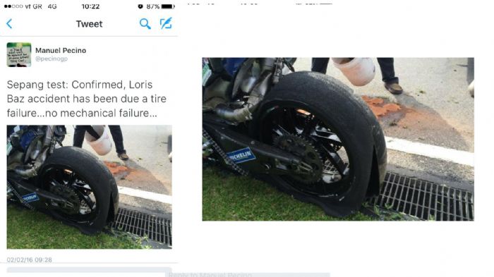 Για μια ώρα διεκόπησαν τα δοκιμαστικά των MotoGP στην Sepang, μετά από την πτώση που είχε ο Lori Baz με την Ducati του στην ευθεία, με 290 χλμ./ώρα. Ευτυχώς ο Γάλλος αναβάτης είναι καλά, αστοχία του πίσω ελαστικού οι πρώτες εκτιμήσεις.