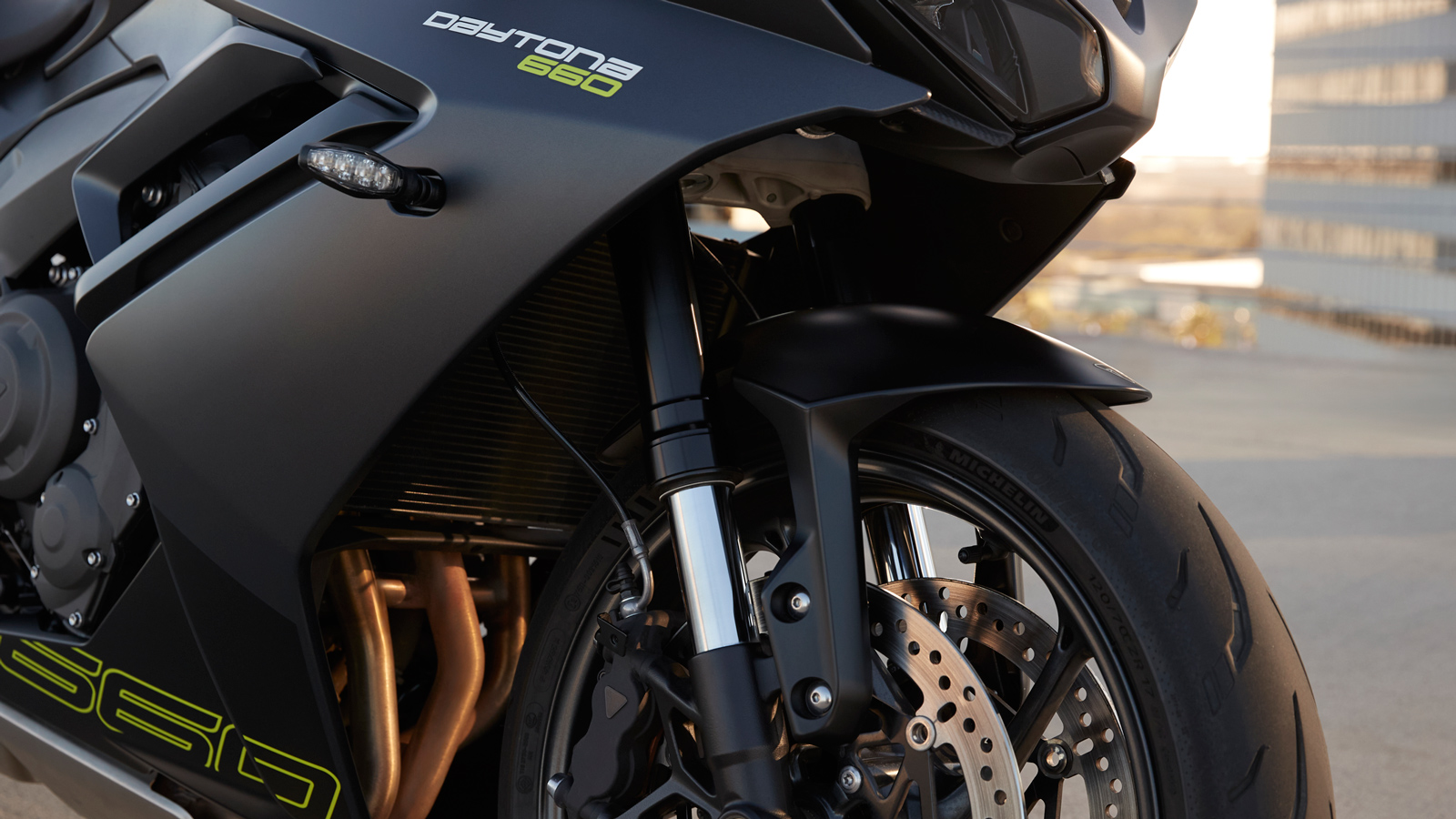 Η Triumph παρουσίασε την ολοκαίνουρια για το 2024 Daytona 660, μία μεσαία σπορ μοτοσυκλέτα υψηλών επιδόσεων και ποιότητας κατασκευής με πλούσιο εξοπλισμό. Εφοδιάζεται με έναν τρικύλινδρο κινητήρα 660cc με διάταξη 240° στον στρόφαλο, που αποδίδει πλέον 95 ίππους στις 11.250 σαλ και 69 Nm ροπής στις 8.250 σαλ το 80% της οποίας έρχεται ήδη από τις 3.125 σαλ καθιστώντας την εύχρηστη σε αστικό περιβάλλον και χαμηλές ταχύτητες, ενώ στροφάρει μέχρι και τις εντυπωσιακές 12.650 σαλ όπου έρχεται ο κόφτης. Η Daytona έχει 17% περισσότερη ισχύ αλλά και 9% περισσότερη ροπή από το Trident ενώ η εξάτμισή της είναι ανασχεδιασμένη με διάταξη 3 σε 1 και φινίρισμα από ανοξείδωτο ατσάλι ώστε να παράγει έναν πολύ ευχάριστο για τον αναβάτη "αγωνιστικό" ήχο.