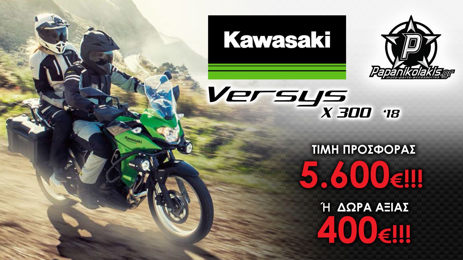 Η Papanikolakis Moto κάνει σημαντική έκπτωση σε δυο κορυφαία μοντέλα της Kawasaki. Δείτε εδώ τις χαμηλότερες τιμές προσφοράς για το Versys 650 και το Versys-X 300.
