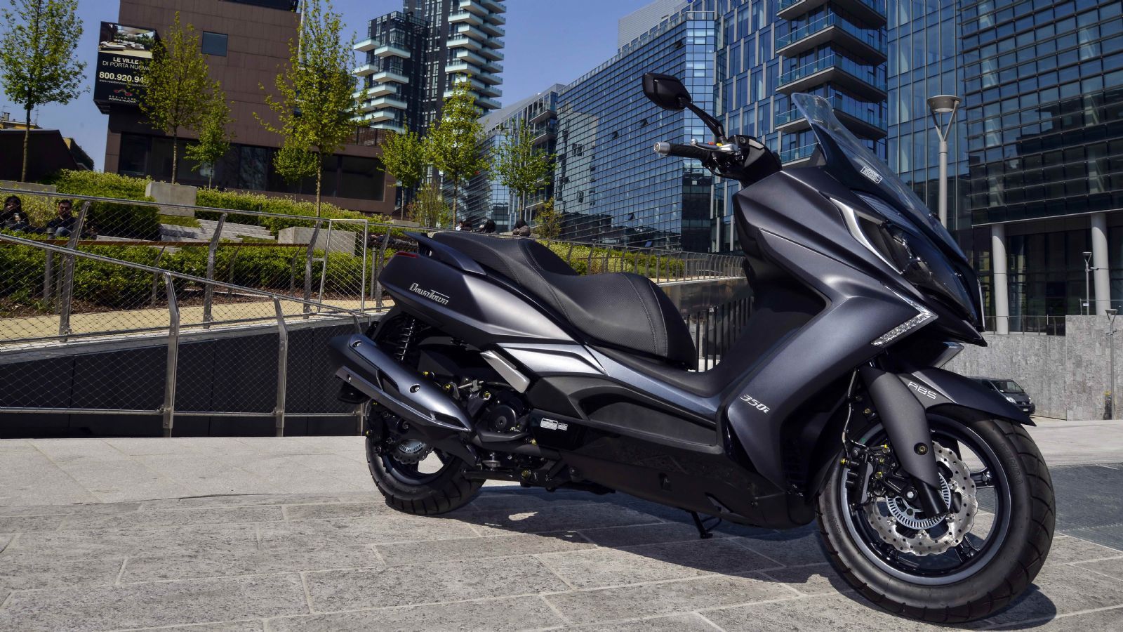 To Downtown 350i ABS είναι ένα maxi scooter που συνδυάζει με τον καλύτερο τρόπο χαρακτηριστικά των κατηγοριών Luxury GT και Sport Touring. Η sport αύρα είναι εμφανής, ειδικά αν εστιάσει κάποιος στο μπροστινό τμήμα του μοντέλου. Όψη γεμάτη γωνίες, δύο LED προβολείς «Eagle Eye», πέντε αεραγωγοί, μεγάλη σέλα, αποθηκευτικός χώρος για δύο full face κράνη, χειρολαβές και ευμεγέθη μαρσπιέ και δάπεδο για να πατούν τα πόδια αναβάτη και συνεπιβάτη με άνεση και σιγουριά. Η νέα ζελατίνα είναι σχεδιασμένη για ακόμα καλύτερη αεροδυναμική προστασία και συνδυάζεται αρμονικά με τις στιλιστικές βελτιώσεις των νέων μοντέλων 2018, όπου οι ασημί λεπτομέρειες προσδίδουν ακόμα μεγαλύτερο κύρος. O κινητήρας των 321cc και 29 ίππων ανήκει στην προηγμένη οικογένεια G5-SC της Kymco και ενσωματώνει όλη τη διαθέσιμη τεχνολογία αιχμής του σήμερα. Στην πράξη, G5-SC σημαίνει μικρότερο βάρος, μικρότερη κατανάλωση, μειωμένοι κραδασμοί και αυξημένη ιπποδύναμη. O μονοκύλινδρος 4βάλβιδος υγρόψυκτος κινητήρας διαθέτει εξελιγμένο σύστημα ψύξης, με σχεδίαση που βελτιώνει τη ροή του αέρα και διατηρεί αναλλοίωτη την απόδοση, ακόμα και μετά από πολύωρη οδήγηση. Το πλαίσιο είναι κατασκευασμένο από ενισχυμένο ατσάλι και το χωρητικότητας 12,5 λίτρων ρεζερβουάρ είναι τοποθετημένο στο κέντρο για καλύτερη κατανομή βάρους. Στα φρένα έχει επιλεγεί κυματιστός δίσκος διαμέτρου 260mm με τριπίστονη δαγκάνα για μπροστά και ένας ακόμη με διπίστονη δαγκάνα διαμέτρου 240mm πίσω. Το δικάναλο σύστημα ABS 9.1 τελευταίας γενιάς της Bosch περιλαμβάνεται στο στάνταρ εξοπλισμό.
