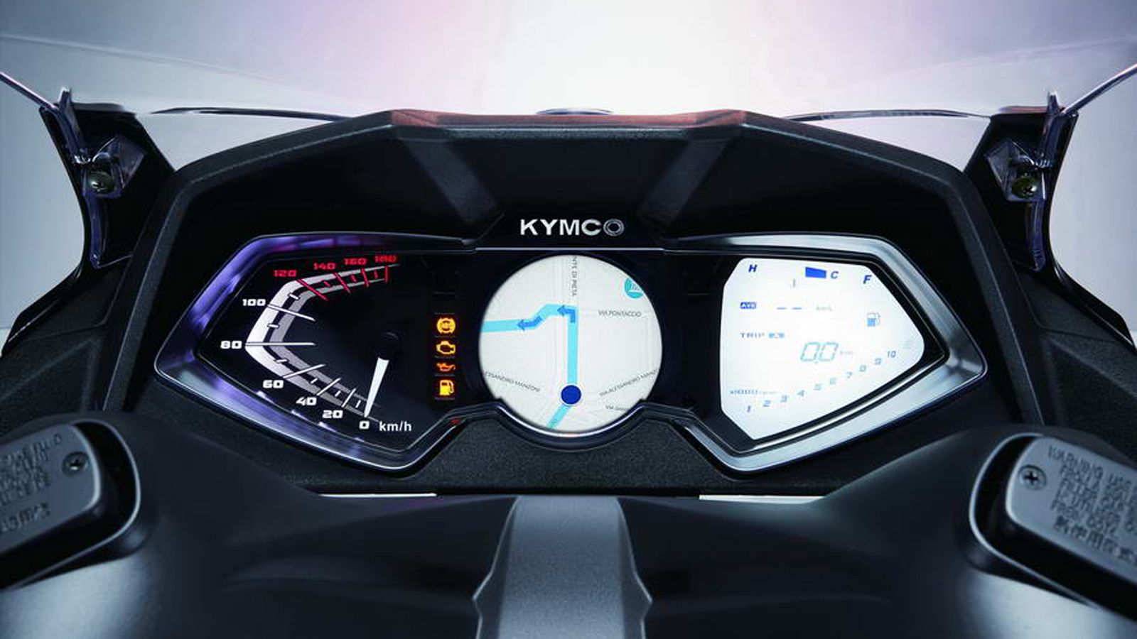 • Smart Compass – Με το scooter να τοποθετείται πάνω στο όργανο σαν κεντρικό σημείο, το σύστημα παρέχει πληροφορίες για θέσεις συνεργατών της Kymco (πχ συνεργείο), βενζινάδικα, καταστήματα, καθώς και άλλα χρήσιμα σημεία που ενδιαφέρουν τον αναβάτη. Επιπλέον, αν οι αναβάτες οδηγούν σε ομάδα, το όργανο μπορεί να δείχνει τη σχετική θέση των μελών της στον πίνακα των οργάνων.