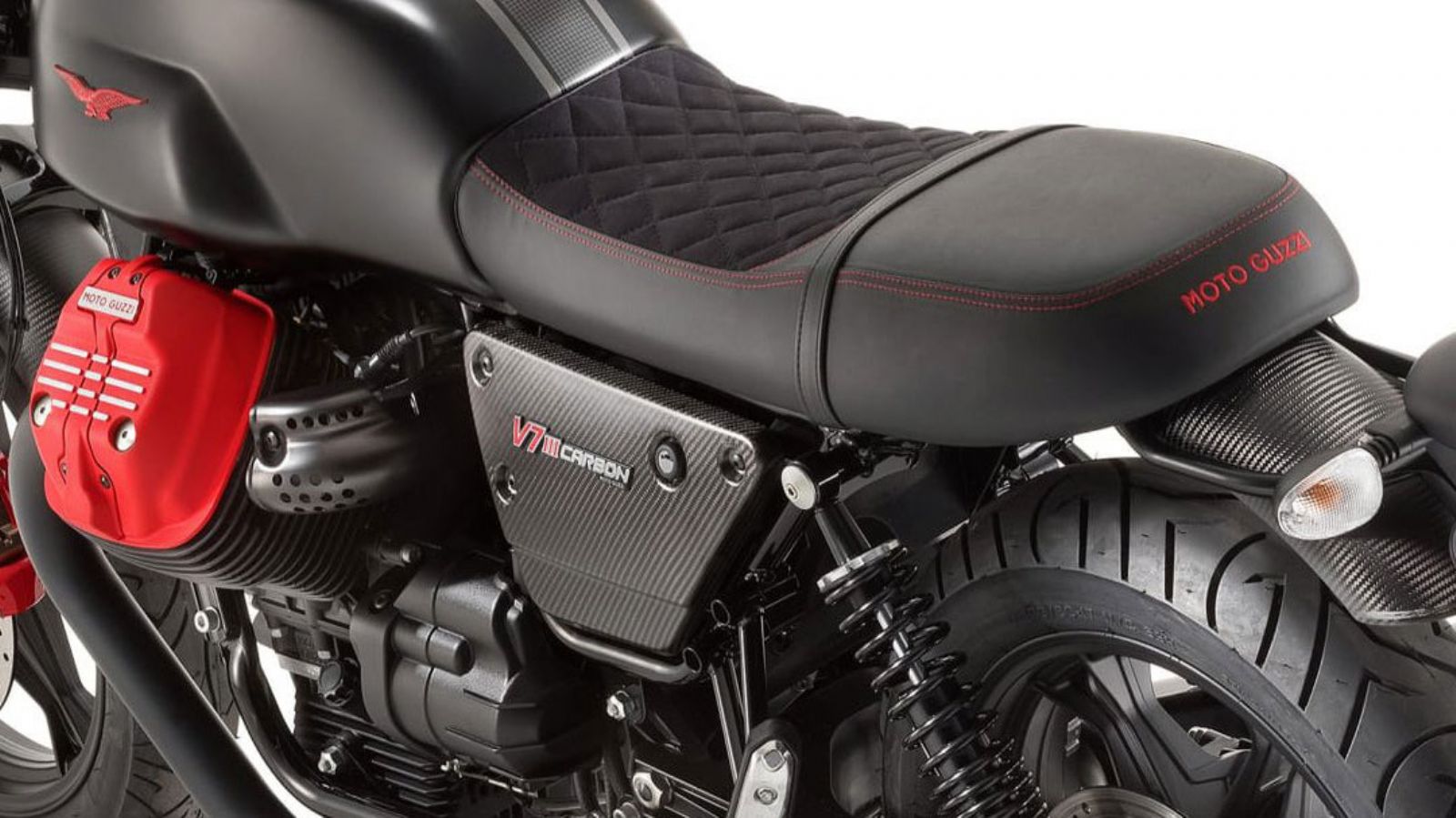 Τα τεχνικά χαρακτηριστικά του Carbon παραμένουν ίδια με αυτά των υπόλοιπων εκδόσεων της V7 III με τον κινητήρα να αποδίδει 52 ίππους και 6.1 κιλά ροπής και το ατσάλινο σωληνωτό πλαίσιο να συνεργάζεται με τηλεσκοπικό πιρούνι 40 χιλιοστών εμπρός και δυο αμορτισέρ πίσω που ρυθμίζονται ως προς την προφόρτιση ελατηρίου. Στον τομέα των φρένων έχουμε έναν δίσκο 320 χιλιοστών εμπρός με 4πίστονη δαγκάνα της Brembo και έναν δίσκο 260 χιλιοστών πίσω με δαγκάνα 2 εμβόλων.