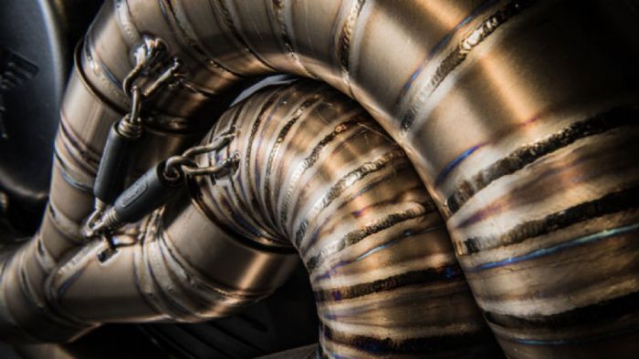 Το πιο εντυπωσιακό στοιχείο του Corsaro Ti22 είναι αναμφίβολα ο κινητήρας των 1.200 κυβικών με την εξάτμιση από τιτάνιο, που έχει κατασκευαστεί από την Arrow αποκλειστικά για αυτό το μοντέλο. Οι κολλήσεις της είναι χάρμα οφθαλμών και ο σχεδιασμός της θυμίζει κάπως τους θαλάμους διαστολής που έχουν οι δίχρονοι κινητήρες. Τα δυο τελικά έχουν ανθρακονήματα στο τελείωμά τους και δεν φιμώνουν τον ήχο του κινητήρα ο οποίος αποδίδει 139 ίππους και 12,7 κιλά ροπής.