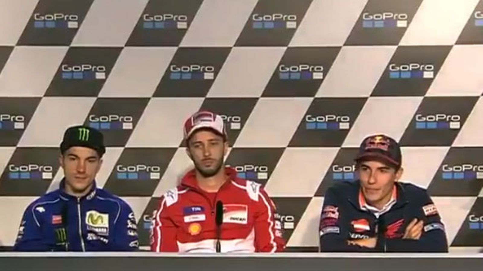 Εχθές πραγματοποιήθηκε η συνέντευξη τύπου των πρωταγωνιστών πριν τον 9ο γύρο του Παγκοσμίου Πρωταθλήματος MotoGP. Οι Dovizioso, Vinales και Marquez μίλησαν για το θέματα που πιστεύουν ότι θα παίξουν σημαντικό ρόλο στην έκβαση του αγώνα. Οι καιρικές συνθήκες και η κατάσταση του οδοστρώματος της πίστας, φαίνεται να είναι οι παράγοντες που θα επηρεάσουν την εξέλιξη του πρωταθλήματος. Ας δούμε τι δήλωσαν:
