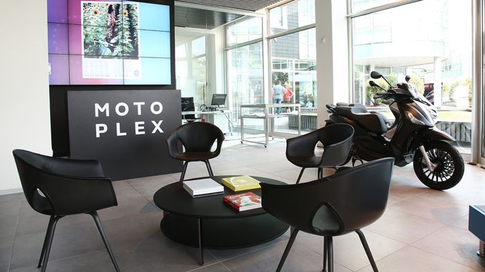Το MotoPlex αποτελεί ένα φόρο τιμής στις πιο σημαντικές μάρκες του Ομίλου - Aprilia, Piaggio, Vespa & Moto Guzzi, καθώς και στα εκατομμύρια των αναβατών και ιδιοκτητών τους ανά τον κόσμο. Το MotoPlex, είναι κάτι παραπάνω από ένα απλό σημείο πώλησης ή εκθεσιακό χώρο, καθώς αποτελεί έναν ολοκληρωμένο πόλο έλξης για τους λάτρεις των 2 τροχών: 1.300 τετραγωνικά μέτρα με 46 εκθεσιακά οχήματα, δύο πραγματικά lounges, όπου μπορεί κανείς να καθίσει και να θαυμάσει βίντεο σε μεγάλες οθόνες, μπαρ, και δυνατότητα ζωντανής παρακολούθησης διοργανώσεων μέσω web streaming, στα δύο μεγάλα video wall 138 ιντσών.