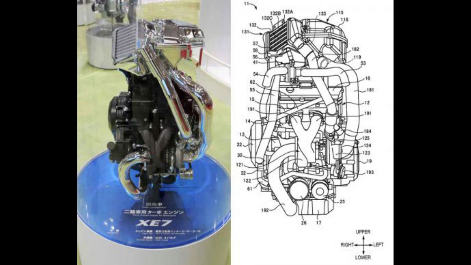 H Suzuki έχει καταθέσει 13 διαφορετικά διπλώματα ευρεσιτεχνίας για μοτοσυκλέτα με υπερτροφοδοτούμενο κινητήρα. Οι εικόνες δείχνουν μια μοτοσυκλέτα με δικύλινδρο κινητήρα, παρόμοιο με τον XE 7 που παρουσιάστηκε στο σαλόνι του Τόκυο το 2015.