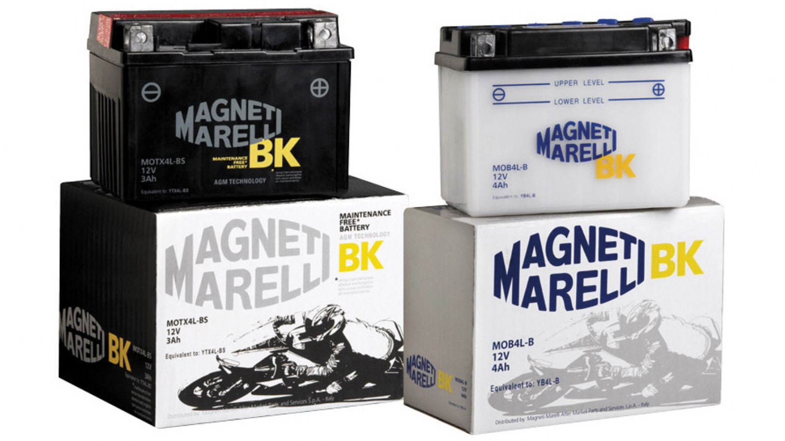 Μπαταρίες ανοικτού και κλειστού τύπου κατάλληλες για την µοτοσυκλέτα, το scooter και το παπί από την κορυφαία Magneti Marelli.