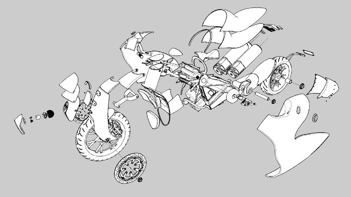Ο Park έχει δώσει μια «λειτουργική» απάντηση σε κάθε απορία που μπορεί να έχει ο παρατηρητής. Πώς μπορεί να στρίβει το τιμόνι της μοτοσικλέτας από τη στιγμή που καλύπτεται από πάνελ; Με την τοποθέτηση ελλειπτικής μπάρας. Πώς αλλάζουν οι τρεις μπαταρίες χωρίς να τσακίσει τη μέση του ο αναβάτης; Με…αυτόματο μηχάνημα (το σχέδιο του ανήκει επίσης στον Park) και με τη δυνατότητα που δίνει ο σχεδιαστής για ανασήκωμα της ουράς. Και πώς φτάνει η δύναμη από το ηλεκτρικό μοτέρ στον πίσω τροχό; Με χρήση γραναζιών και φυσικά με τη χρησιμοποίηση άξονα για την τελική μετάδοση.